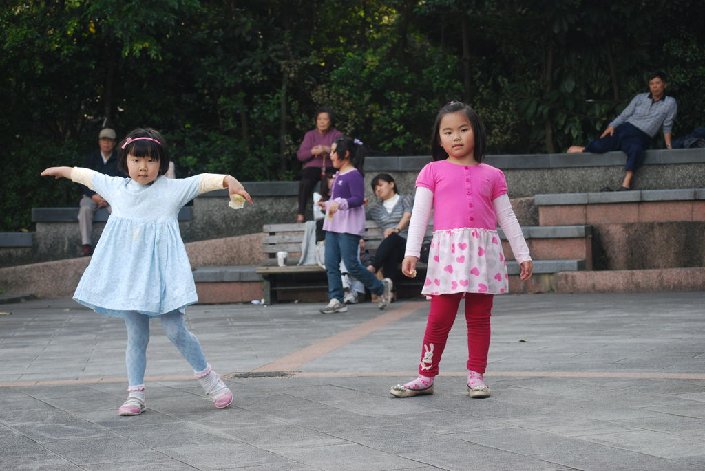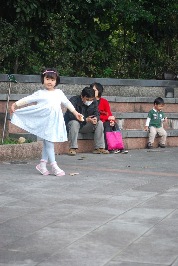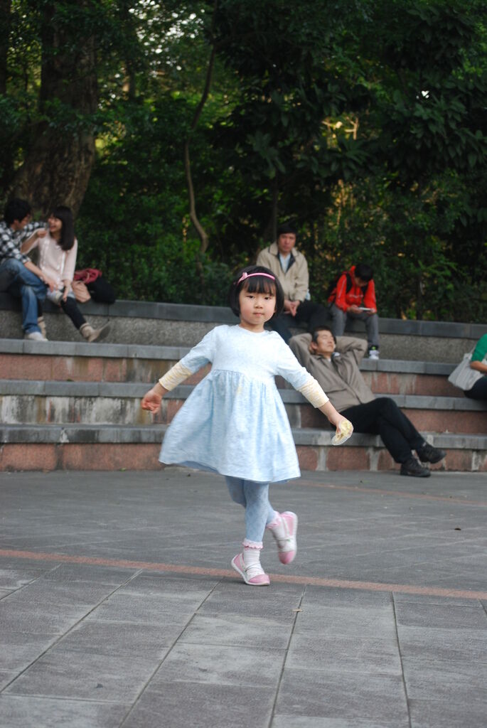 最後爸比讓我們在人行道的椅子休息,等他去開車來接。